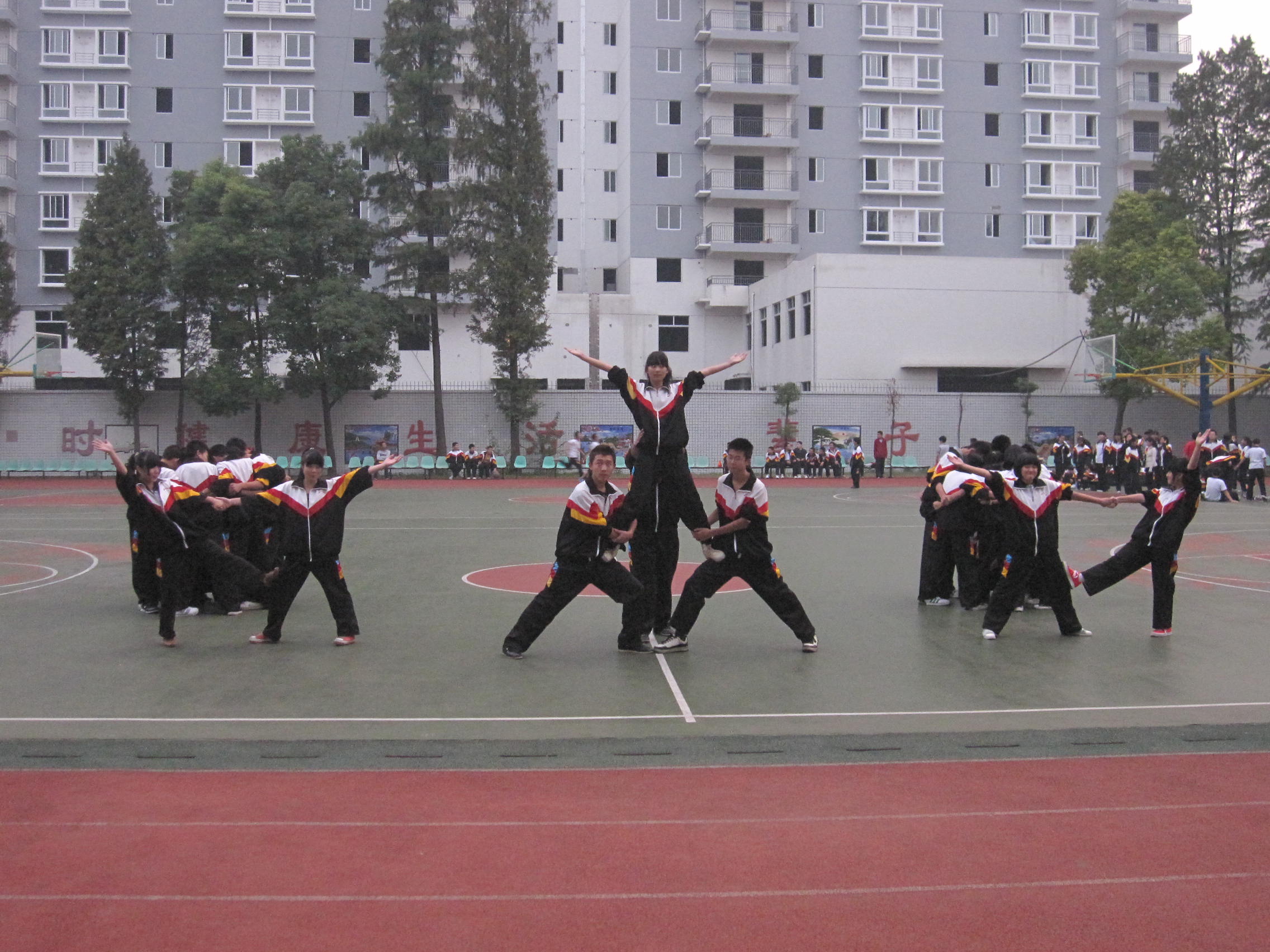 為展示學(xué)校藝術(shù)教育成果,活躍校園的藝術(shù)氛圍,我校舉行健美操比賽活動。10月30日下午,高一年級8個班學(xué)生參加了健美操預(yù)賽。