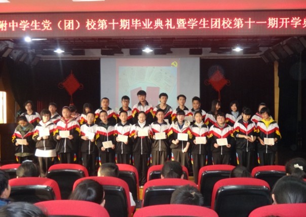 3月19日下午,在二樓報告廳舉行的湖大附中學生黨(團)校第十期畢業(yè)典禮暨學生團校第十一期開學典禮上,第十期黨校學員共51名,44人領(lǐng)到結(jié)業(yè)證書,其中10人被評為優(yōu)秀學員;團校學員共122人,104人領(lǐng)到結(jié)業(yè)證書,其中22人被評為優(yōu)秀學員。被表彰的32名優(yōu)秀學員,是經(jīng)黨團校對出勤、學習表現(xiàn)、作業(yè)完成以及課外實踐活動等方面進行綜合考評后,從參加學習的近兩百名學員中推薦出來的。