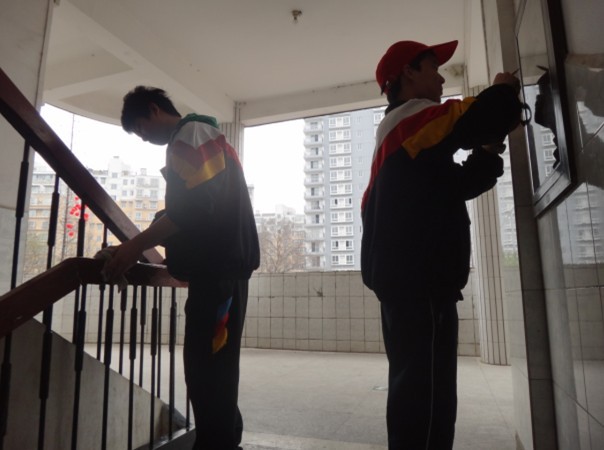 中午13時(shí)整,學(xué)員們帶著掃帚、戳箕、抹布、水桶等勞動(dòng)工具在教學(xué)樓前集合,按照事先的分工安排,分小組對(duì)校園內(nèi)的樓道、墻壁、櫥窗、草地等進(jìn)行清理。學(xué)員們干勁十足,充分發(fā)揚(yáng)了不怕臟不怕累的精神。