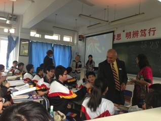 不知不覺中,一節(jié)課就過去了?腿穗x開時,很多同學都圍上去和客人們互留電話號碼。這次面對面的和外國朋友的對話對我們畢業(yè)班學生的聽力,口語,是一次極佳的鍛煉機會。更重要的是開拓了他們的國際視野,為孩子們打開了通往外面世界的窗戶?傊,這次中外語言交流使孩子們在相對于沉悶的英語復習備考當中抹上了一抹亮色。