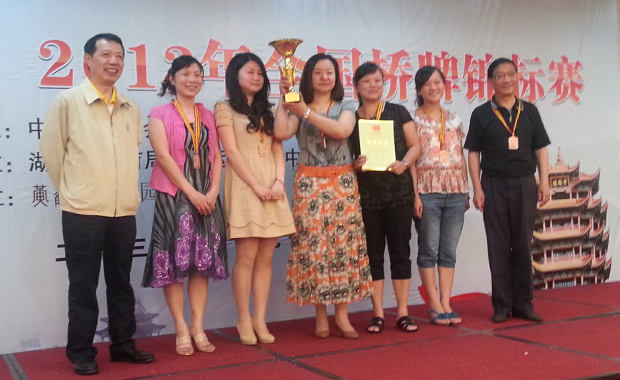 “黃鶴樓杯”2013年全國橋牌錦標賽于5月17日到26日在武漢舉行!我校孫蕾老師和鐵四院學校章紅娟老師搭檔代表湖北心怡隊參加此次比賽,在女子團體賽項目中,她們打敗了眾多強隊最終獲得季軍!這也是湖北代表團此次比賽獲得的最好成績。