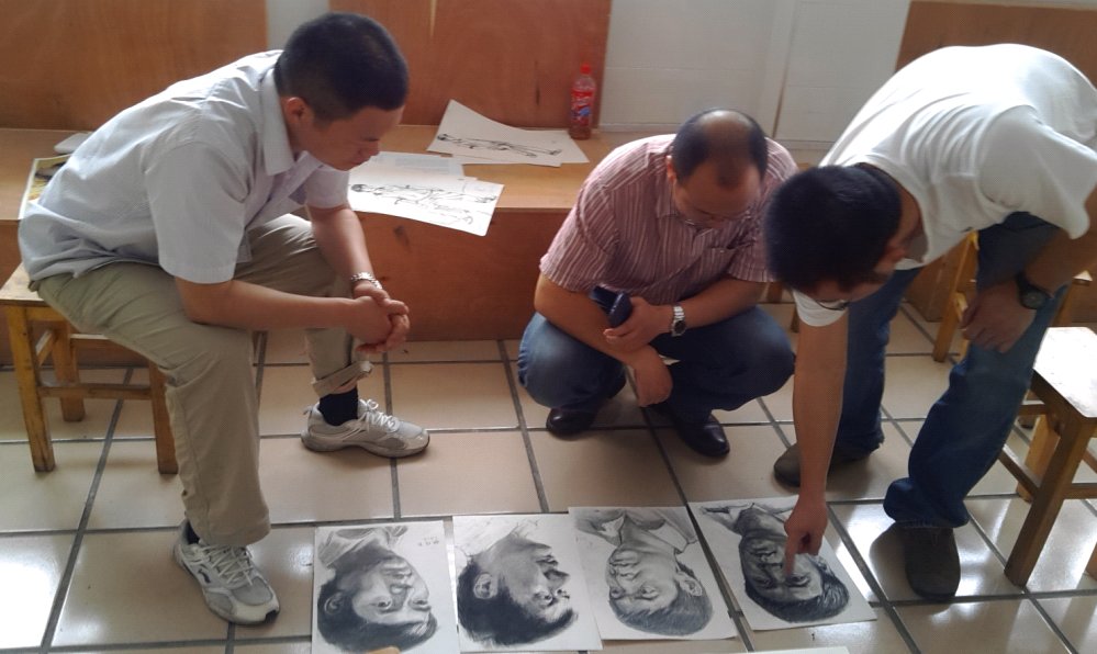 測(cè)試共分為三個(gè)大環(huán)節(jié):繪畫(huà)基本功、理論測(cè)試及試講。繪畫(huà)基本功共有素描、色彩、速寫(xiě)三門(mén)組成。每位老師至少參加其2門(mén)基本功考試,理論測(cè)試與試講則是必考內(nèi)容。我校特聘湖北大學(xué)美術(shù)學(xué)院的專家擔(dān)任專業(yè)評(píng)委,對(duì)每位老師的教學(xué)資質(zhì)按評(píng)分細(xì)則進(jìn)行詳細(xì)打分。