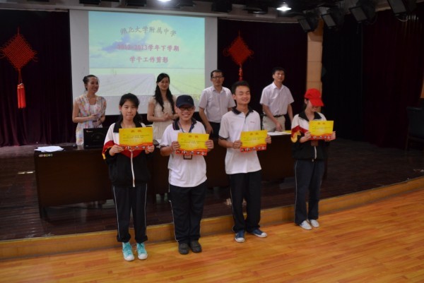 首先學工處曾主任宣讀了《優(yōu)秀團隊表彰決定》,學生會、國旗班、廣播臺、高一年級學生會四個團隊被評為“2012-2013學年第二學期優(yōu)秀團隊”。各團隊負責人依次上臺做團隊介紹。