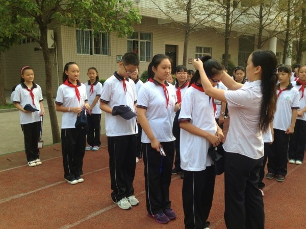 接著,六個年級學生會的指導老師分別為各年級學干佩戴工作證、工作帽,學工處主任胡勝民、副主任曾國斌、校團委書記張莉為校團委學生會學干佩戴工作證、工作帽。