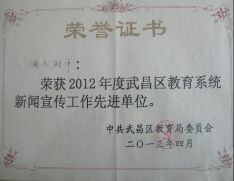 二、學(xué)校榮獲2011-2012年度武昌區(qū)最佳文明單位稱號。