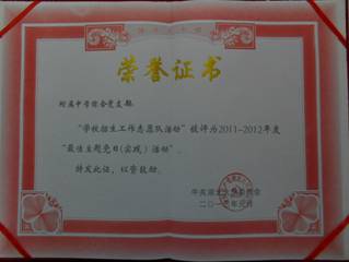 三、學(xué)校黨建工作獲得新突破,學(xué)校黨總支榮獲“先進基層黨組織稱號”,學(xué)校榮獲湖北大學(xué)2012年度校園閱讀活動優(yōu)秀組織獎。