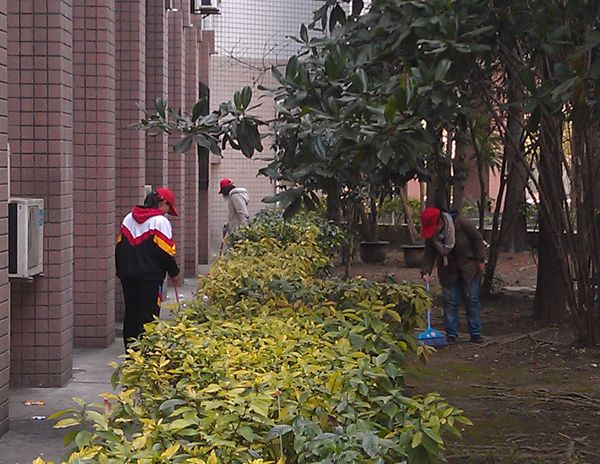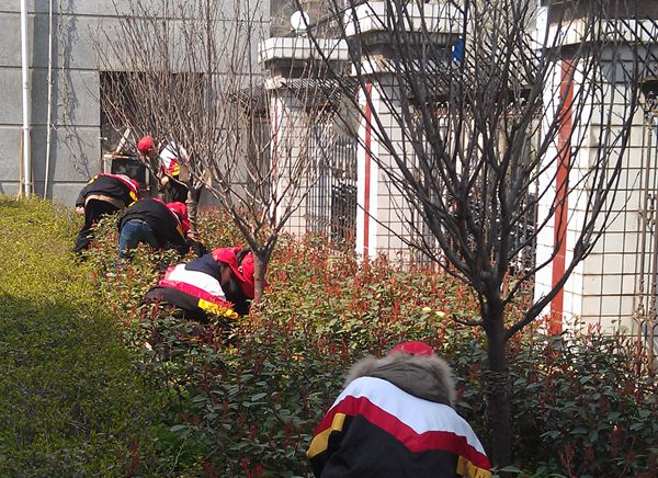 10多名志愿者準(zhǔn)時在指定地點(diǎn)集合,并將工具準(zhǔn)備齊全。大家來到櫻花樹花壇為一棵棵櫻花樹清除雜草,拾撿清掃校園文化小廣場上的白色垃圾,并對校園的科技樓進(jìn)行了全面打掃。活動中同學(xué)們分工明確,不怕臟,不怕累,不回避、不嫌棄,干勁十足。