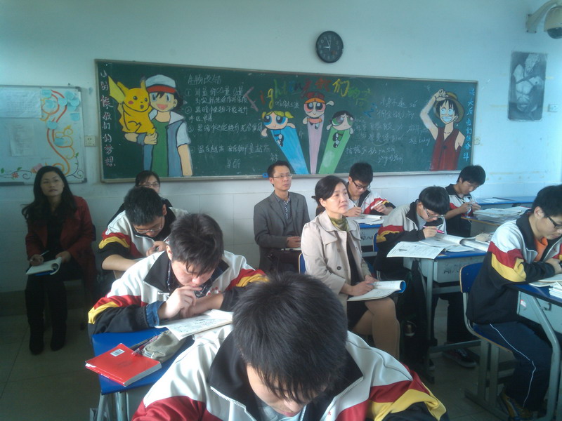 上午二、三節(jié)課,教研員和來校調(diào)研的老師分學(xué)科聽了我校高三物、化、生老師的六節(jié)課。課后,三個(gè)學(xué)科的老師分組討論了各個(gè)學(xué)科存在的問題和改進(jìn)的方法。