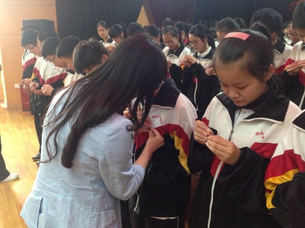 儀式上,校團委書記張莉和初二年級老團員代表一起為新團員們佩戴上暫新的團徽。新團員們面對團旗,高舉右拳,莊嚴宣誓。最后,張書記勉勵新團員們要繼續(xù)努力,牢記入團誓詞,高標準要求自己,在思想上和行動上做好先鋒模范,共同祖國的發(fā)展而奮斗!入團儀式結束后,全體新團員們參加了第十屆全國青少年書信比賽,比賽內(nèi)容是以“生態(tài)園博、綠色生活——寄語武漢園博會”為主題,撰寫一封信。