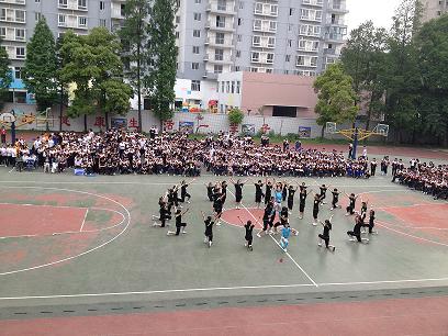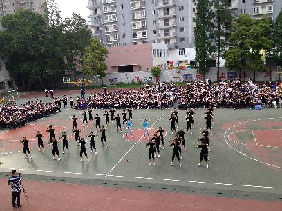 火紅的五月,為紀念五四運動95周年,我校開展了合唱、健美操、朗誦等形式多樣、豐富多彩的紀念活動。其中,5月5日在操場舉行了全校新一屆的健美操決賽,由預賽選拔出來的12支團隊,穿著班級特色的運動服裝,在輕快的音樂中,展現(xiàn)了同學們的風采。初一年級的同學們作為全校年齡最小的團隊進入決賽,他們是初一(1)班和初一(2)班。