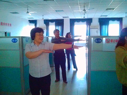為豐富課余文化生活,營造教師間團(tuán)結(jié)、奮進(jìn)、求實(shí)、創(chuàng)新的良好氛圍,增強(qiáng)教師的身體素質(zhì)和幸福指數(shù),全體高二年級老師積極參與學(xué)校倡導(dǎo)的 “每天健身一小時,健康生活一輩子”的工間操訓(xùn)練活動。從5月初開始,專門在董輝和陳智老師的帶領(lǐng)下于學(xué)生大課間時間訓(xùn)練第九套廣播體操,在活動中不僅鍛煉了身體還增強(qiáng)了教師團(tuán)隊(duì)協(xié)作精神,展示了高二年級充滿活力、充滿激情、和諧發(fā)展的年級氛圍!
