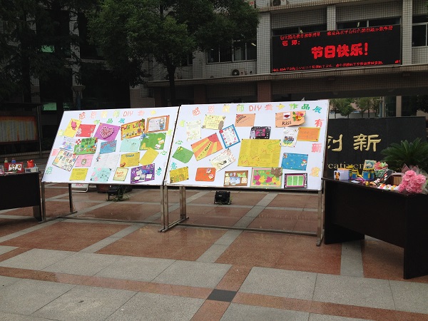 3.“有新意 有心意;有創(chuàng)意、有情意”創(chuàng)意禮物大賽。該活動要求各班至少上交3件DIY創(chuàng)意禮物,這些禮物要求創(chuàng)意、節(jié)儉、真情實感。截至9月10日,全校共上交了130余件作品,有創(chuàng)意賀卡、手工花籃、紙風鈴、環(huán)保相框桌擺……,經學工處胡主任、高一年級黨支部書記陳曉芳老師、高一年級語文黃紅星老師的投票評選,在初中選出了10件優(yōu)秀創(chuàng)意禮物作品,在高中選出了20件優(yōu)秀創(chuàng)意賀卡作品。這些活潑生動、饒有趣味的作品于教師節(jié)當天在校訓碑前展出,得到了師生們的喜愛,駐足停留,拍照留念。