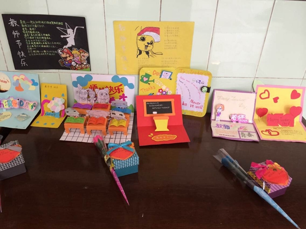 此次活動給同學們提供了一次展示創(chuàng)意和手工技巧的舞臺。教師節(jié)老師們看到這些獨具新意的賀卡和禮物時候,紛紛感到意外和驚喜。他們都表示,想不到想不到我們的學生如此心靈手巧,這樣的禮物十分貼心。
