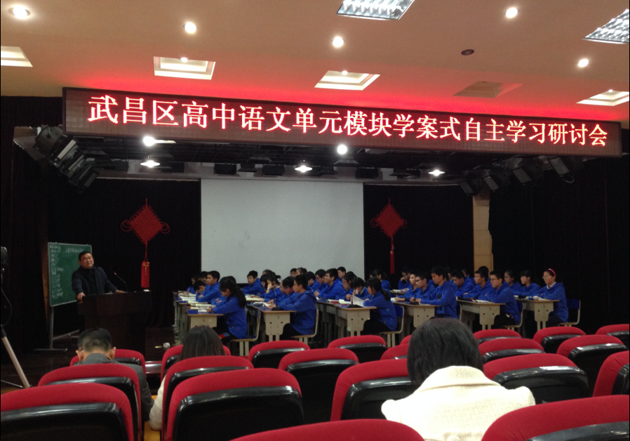 2014年11月5日下午,武昌區(qū)武昌區(qū)高中語(yǔ)文你單元模塊學(xué)案式自主學(xué)習(xí)研討會(huì)在我校二樓報(bào)告廳舉行,武昌區(qū)全體高一、高二語(yǔ)文教師參加了此次活動(dòng)。