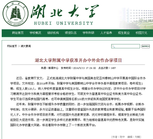 4. 我校獲批國(guó)際合作辦學(xué)項(xiàng)目,省教育廳批準(zhǔn)我校與美國(guó)俄勒岡州橡樹(shù)山中學(xué)開(kāi)展合作辦項(xiàng)目。