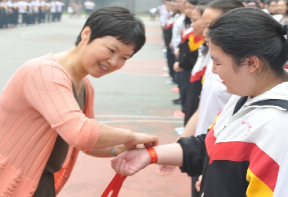 何鳳桃書記為學(xué)生系腕帶