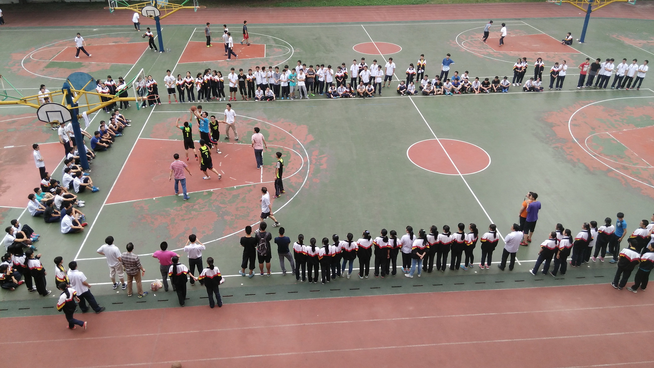 為了豐富學(xué)生課外活動(dòng),促進(jìn)教職工加強(qiáng)體育鍛煉、展示教職工風(fēng)采, 2015年6月9日下午高一年級(jí)課外活動(dòng)時(shí)間,在體育教師的組織下,高一年級(jí)學(xué)生籃球隊(duì)與教工籃球隊(duì)進(jìn)行了一場(chǎng)師生對(duì)抗賽,教師隊(duì)由張振杰、章雄剛、駱國(guó)鋒、秦儉、蔡有緣、胡勝民、范志猛等老師組成,體衛(wèi)藝張悅目老師為裁判。