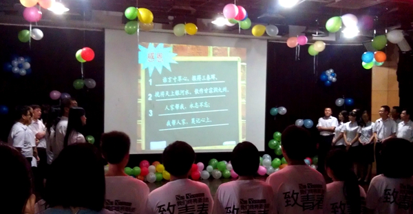 隨后各班精心制作的視頻再現(xiàn)了三年高中生活的精彩瞬間和各具特色的班級(jí)文化。其間男生小合唱《一生有你》和《奔跑》唱出了全體畢業(yè)生對(duì)長(zhǎng)輩的感恩,對(duì)同學(xué)友情的珍重和美好未來(lái)的向往。高三老師們?cè)谂R別之時(shí)走上舞臺(tái)給大家上了《最后一課》。短短的十分鐘里,圍繞“責(zé)任、誠(chéng)信、夢(mèng)想、奮斗、感恩”,老師們選取了中國(guó)傳統(tǒng)文化 “誠(chéng)者,天之道也;思誠(chéng)者,人之道也!薄疤煨薪,君子以自強(qiáng)不息;地勢(shì)坤,君子以厚德載物”等經(jīng)典名句。同學(xué)們跟隨老師慷慨激昂地吟誦,諄諄教誨和句句叮嚀銘記于心。下課鈴聲響起后,大家用深深的鞠躬和深情的擁抱表達(dá)對(duì)每一位老師的感激和不舍。最后高三年級(jí)各班班主任為畢業(yè)生頒發(fā)畢業(yè)證、畢業(yè)紀(jì)念冊(cè)。