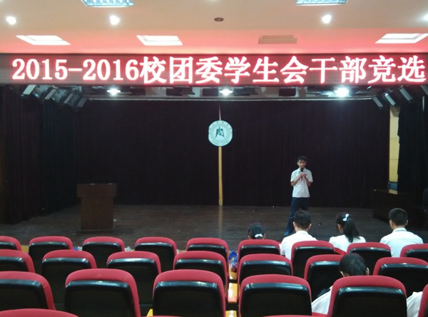 9月11日下午第三節(jié)課,校團(tuán)委學(xué)生會干部換屆選舉活動在二樓報告廳順利進(jìn)行,來自高二年級八個班的20名同學(xué)在競選舞臺上勇敢發(fā)聲、展示自我。