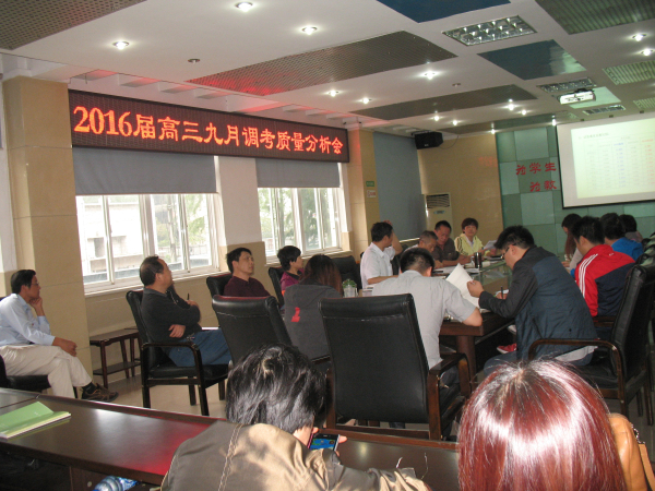 首先年級主任衛(wèi)月琴作九月調考質量分析報告。她在報告中對本屆在校在籍學生情況和本次考試各項數(shù)據(jù)進行分析,指出這次調考反映出的現(xiàn)階段存在的問題,以及明確了下階段工作努力的方向。