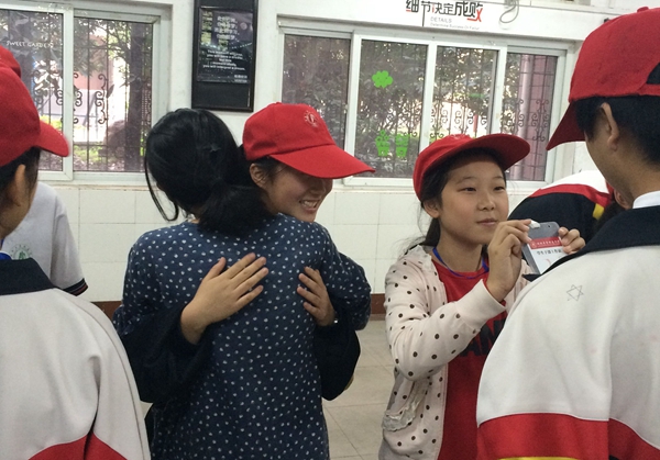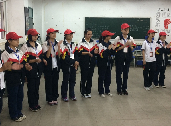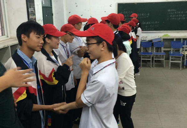 活動(dòng)宣布開始后,30名校級(jí)學(xué)干在活動(dòng)教室里圍成一個(gè)圈,每個(gè)人在20秒里作簡短自我介紹。伴著熱烈的掌聲,大家各有特色地介紹自己名字以及大聲說出自己的優(yōu)點(diǎn)。隨后三十個(gè)人被隨機(jī)分成兩個(gè)組,大家面對(duì)面,由一組主動(dòng)問候?qū)γ娴耐瑢W(xué),喊出對(duì)方的名字,并夸獎(jiǎng)對(duì)方的優(yōu)點(diǎn),然后另一組同樣予以回應(yīng)。然后雙方相互握手輕拍肩膀或擁抱表達(dá)友好之情。隊(duì)伍不停輪動(dòng)中,雙方同學(xué)相互認(rèn)識(shí)。隨后兩組同學(xué)組內(nèi)相互問候,并各派一名同學(xué)與另一組進(jìn)行游戲“你真棒”PK。原本陌生的大家在歡笑聲中很快彼此了解,收獲了親密。