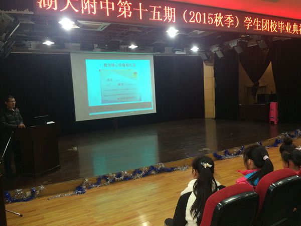 首先校團(tuán)委書記張莉宣讀《關(guān)于確定十五期學(xué)生團(tuán)校學(xué)員學(xué)業(yè)等詞的決定》,并給各班代表頒發(fā)結(jié)業(yè)證書。隨后,胡主任宣讀《學(xué)團(tuán)史知團(tuán)情團(tuán)章知識競賽獲獎名單》以及《關(guān)于表彰第十五期團(tuán)校優(yōu)秀團(tuán)員的決定》,并給獲獎學(xué)員和優(yōu)秀學(xué)員頒發(fā)榮譽(yù)證書。 優(yōu)秀學(xué)員代表郭紫晴發(fā)表講話,表達(dá)了對加入團(tuán)組織的榮幸預(yù)定未來的無限憧憬。最后,胡主任致詞,表達(dá)了對團(tuán)校學(xué)員的殷切希望。