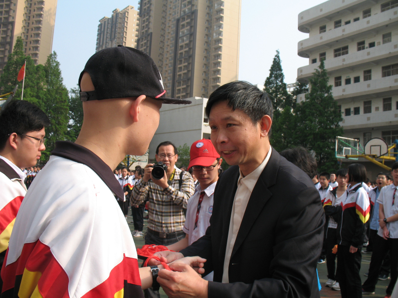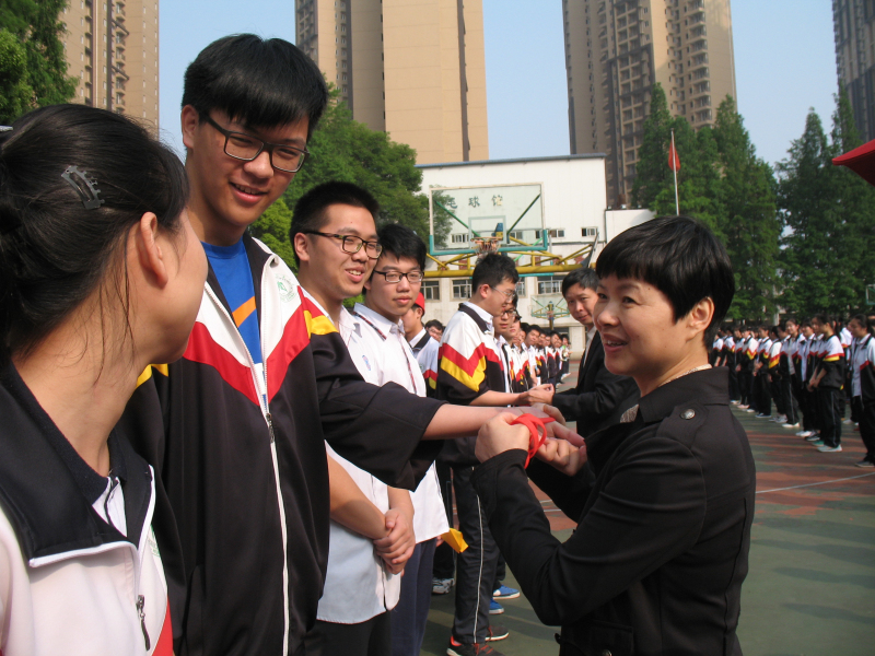 活動(dòng)伊始,高二年級(jí)學(xué)生代表發(fā)表了深情的主題演講,表達(dá)了學(xué)校、老師、同學(xué)對(duì)高三學(xué)子的深深祝福和濃濃情誼。隨后,副校長(zhǎng)朱寧代表學(xué)校領(lǐng)導(dǎo)寄語廣大高三學(xué)子笑傲高考,勇創(chuàng)輝煌。接著初中、高一、高二學(xué)生1000多人齊聲吶喊,“高三加油,學(xué)長(zhǎng)加油!加油!”,吶喊加油聲一聲比一聲高,響徹附中校園上空。在全體同學(xué)們的歡呼聲中,校長(zhǎng)黃朝炎、黨總支書記何鳳桃以及高三全體教師,手拿印有“2016高考加油!”的祝福的紅色腕帶,來到相應(yīng)高三的班級(jí),親手為學(xué)生系上腕帶,祝福他們?cè)?/SPAN>2016年高考中取得佳績(jī),金榜題名,夢(mèng)想成真!條條腕帶表達(dá)了全體附中師生的心聲,祝愿我校2016屆高三全體學(xué)生用青春的激情譜寫出人生最壯美的詩(shī)篇,抒寫花兒般美麗絢爛的人生。