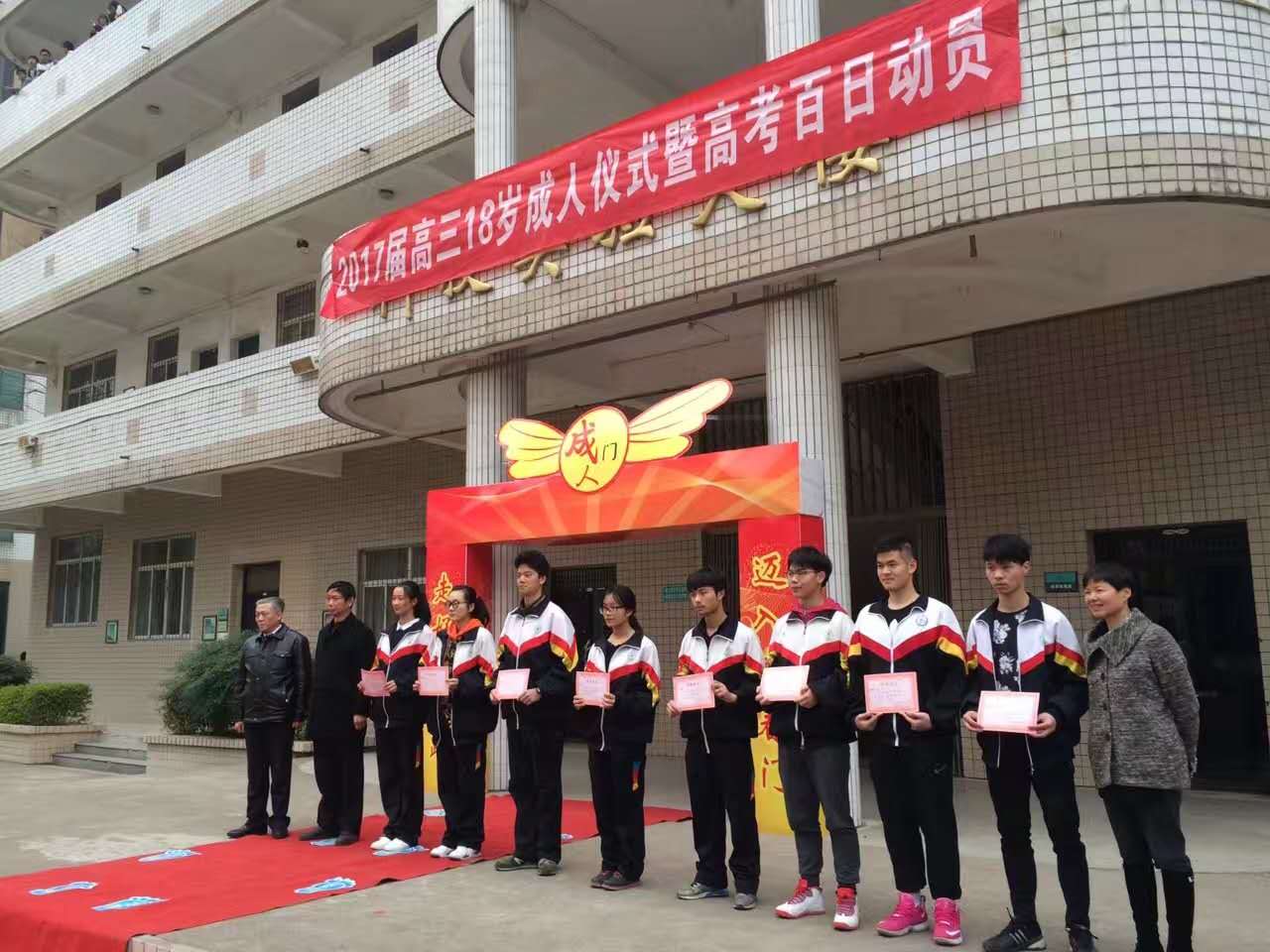 3月3日下午,高三年級在校團委、學(xué)工處的組織下進行了成人禮儀式暨高考百日動員誓師大會。校領(lǐng)導(dǎo)、高三年級全體教師及學(xué)生家長代表與會。