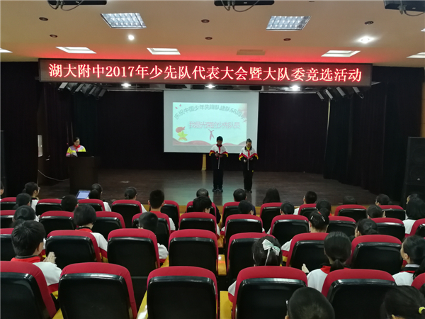 2017年10月13日,在建隊(duì)68周年紀(jì)念日的當(dāng)天,湖大附中大隊(duì)部舉行了“我是光榮的少先隊(duì)員”2017年少先隊(duì)代表大會(huì)暨大隊(duì)委競(jìng)選活動(dòng)。