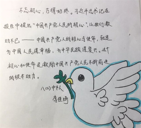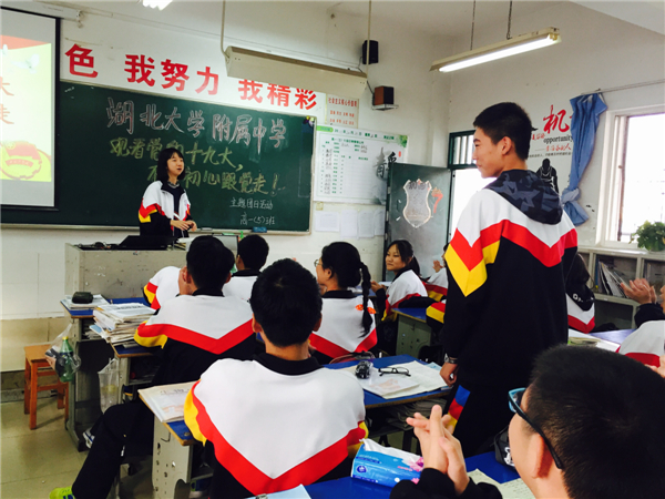 10月20日下午,湖大附中高中各支部初中各中隊舉行了“觀看黨的十九大,不忘初心跟黨走“主題團日活動。同學們認真觀看了紀錄片《領(lǐng)航》、十九大報告節(jié)選,并進行了熱烈討論,將自己的心得體會用圖文并茂的方式展現(xiàn)出來。