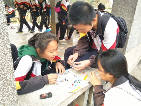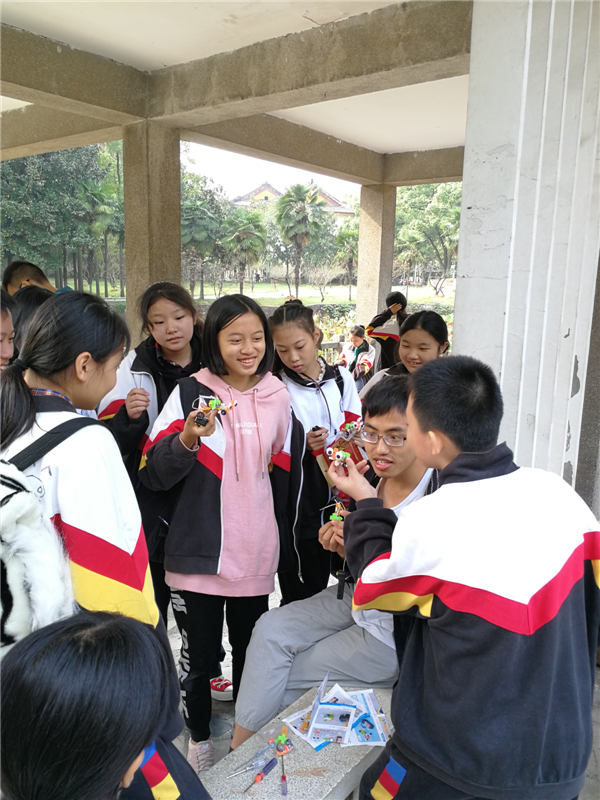 到達華中農(nóng)業(yè)大學(xué)后,同學(xué)們零距離探訪大學(xué)校園,領(lǐng)略高科技技術(shù)成果。上午進行了喻家山戶外拓展、四旋翼飛行器表演,中午就餐于華中科技大學(xué)食堂,下午在大學(xué)青年園草坪學(xué)習(xí)四旋翼飛行器的飛行原理、平衡車平衡控制技術(shù),并分組合作完成電動小車。