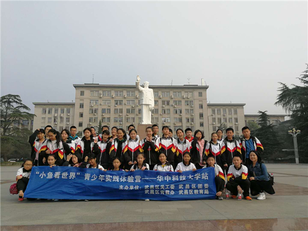 10月29日,我校初一初二(4)班36名學(xué)生在班主任武漢老師的帶領(lǐng)下,參加了由武昌區(qū)關(guān)工委、武昌區(qū)團委、武昌區(qū)青教辦、武昌區(qū)教育局組織的,"小魚看世界"青少年實踐體驗營——華中科技大學(xué)站活動。