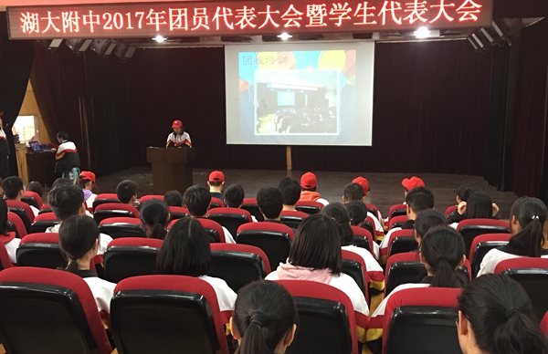 11月3日下午,在雄壯的國歌聲中我校2017年團(tuán)員代表大會暨學(xué)生代表大會在學(xué)校報告廳隆重召開。高中各支部選派團(tuán)員代表和學(xué)生代表共80余人參加了活動,大會由校學(xué)生會副主席吳曉龍主持。