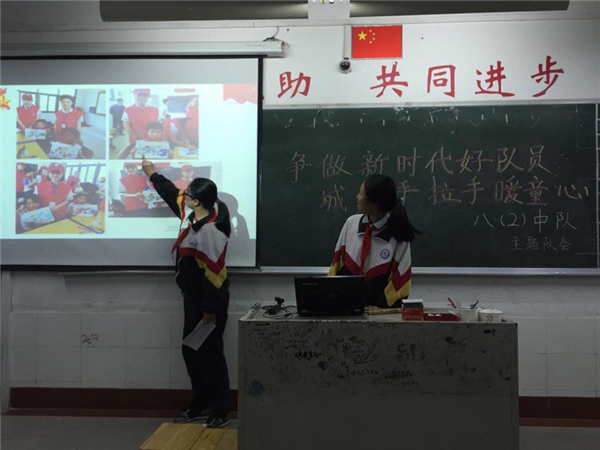 4月13日下午,在我校大隊部指導下,七八年級各中隊召開主題為“爭做新時代好少年,城鄉(xiāng)手拉手暖童心”活動分享主題隊會。各中隊輔導員、中隊長認真組織,規(guī)范隊會儀式,實地參加附中與柳河小學手拉手活動的隊員紛紛匯報活動過程,講述自己見聞、交流感想。