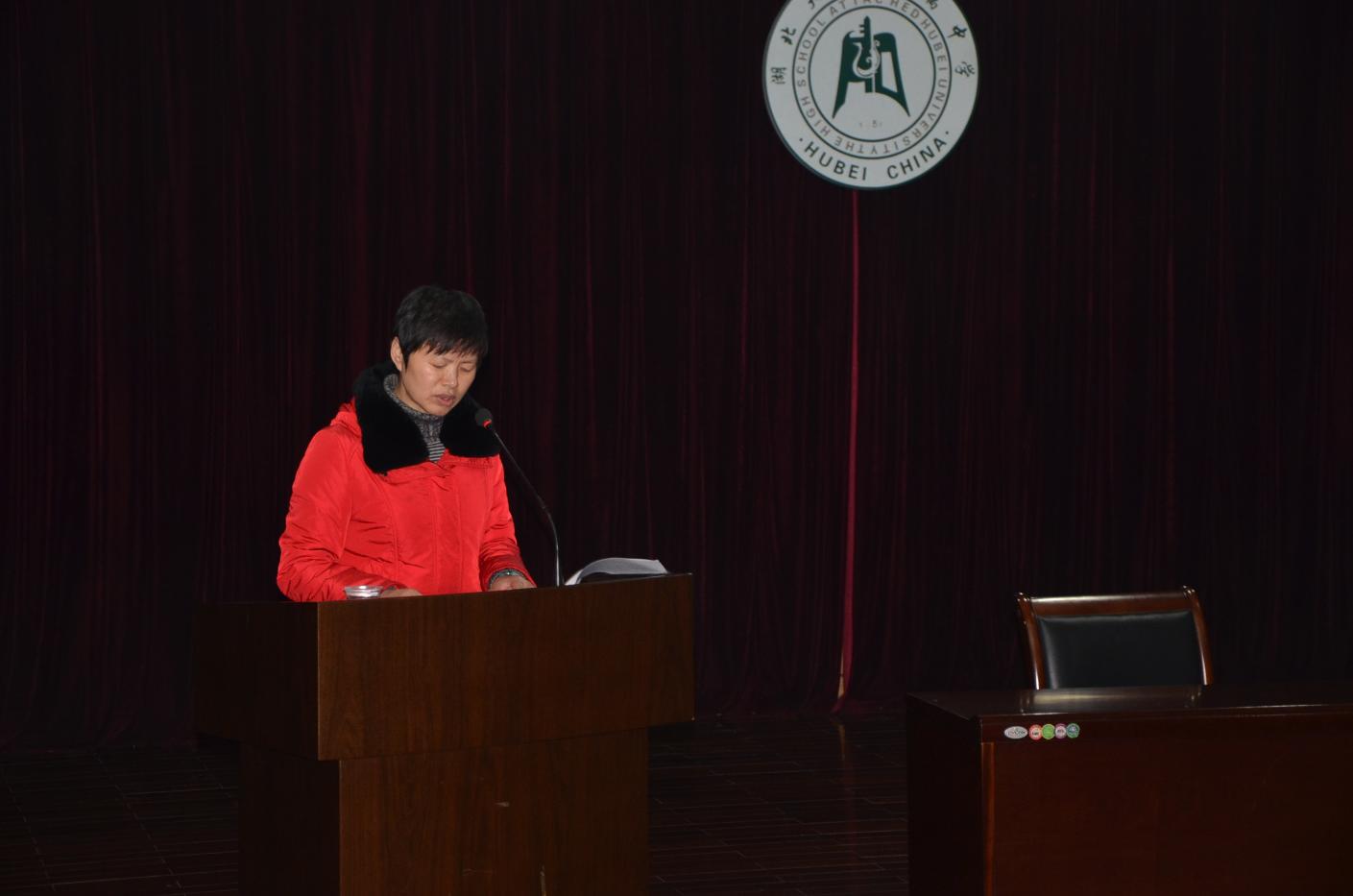 2019年1月15日下午,學(xué)校2018年度領(lǐng)導(dǎo)班子及班子成員履職盡責(zé)暨黨風(fēng)廉政建設(shè)大會在二樓報告廳舉行。湖北大學(xué)紀委副書記謝鑒同志、湖北大學(xué)紀委辦公室副主任石光紅同志、監(jiān)察處主任科員魏文杰同志參加會議并查閱了學(xué)校黨風(fēng)廉政建設(shè)相關(guān)資料。會議由學(xué)校黨總支書記何鳳桃同志主持。