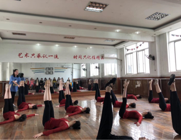 北片音樂教研活動片長雷小東老師對我校高中舞蹈教學(xué)的基本學(xué)情進(jìn)行簡單介紹后,課堂在舒緩的古典鋼琴曲中開始。本堂課主要分為兩個部分:軟開度和技術(shù)技巧,全面的將普通中學(xué)古典舞基訓(xùn)課中的軟開度、平轉(zhuǎn)、側(cè)手翻等核心基本功教學(xué)內(nèi)容進(jìn)行了展示。