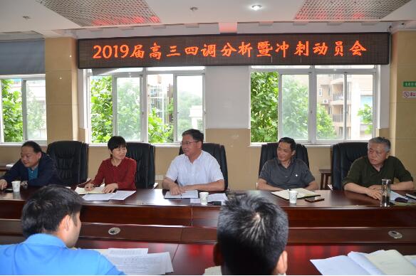 2019年5月5日下午,我校召開(kāi)以“分析形勢(shì),堅(jiān)定信心,全力以赴沖刺高考”為主題的2019屆高三年級(jí)四月調(diào)考質(zhì)量分析會(huì)。湖北大學(xué)紀(jì)委書(shū)記檀坤華,附中高考領(lǐng)導(dǎo)小組成員及高三全體教師參加會(huì)議。會(huì)議由黨總支書(shū)記何鳳桃主持。