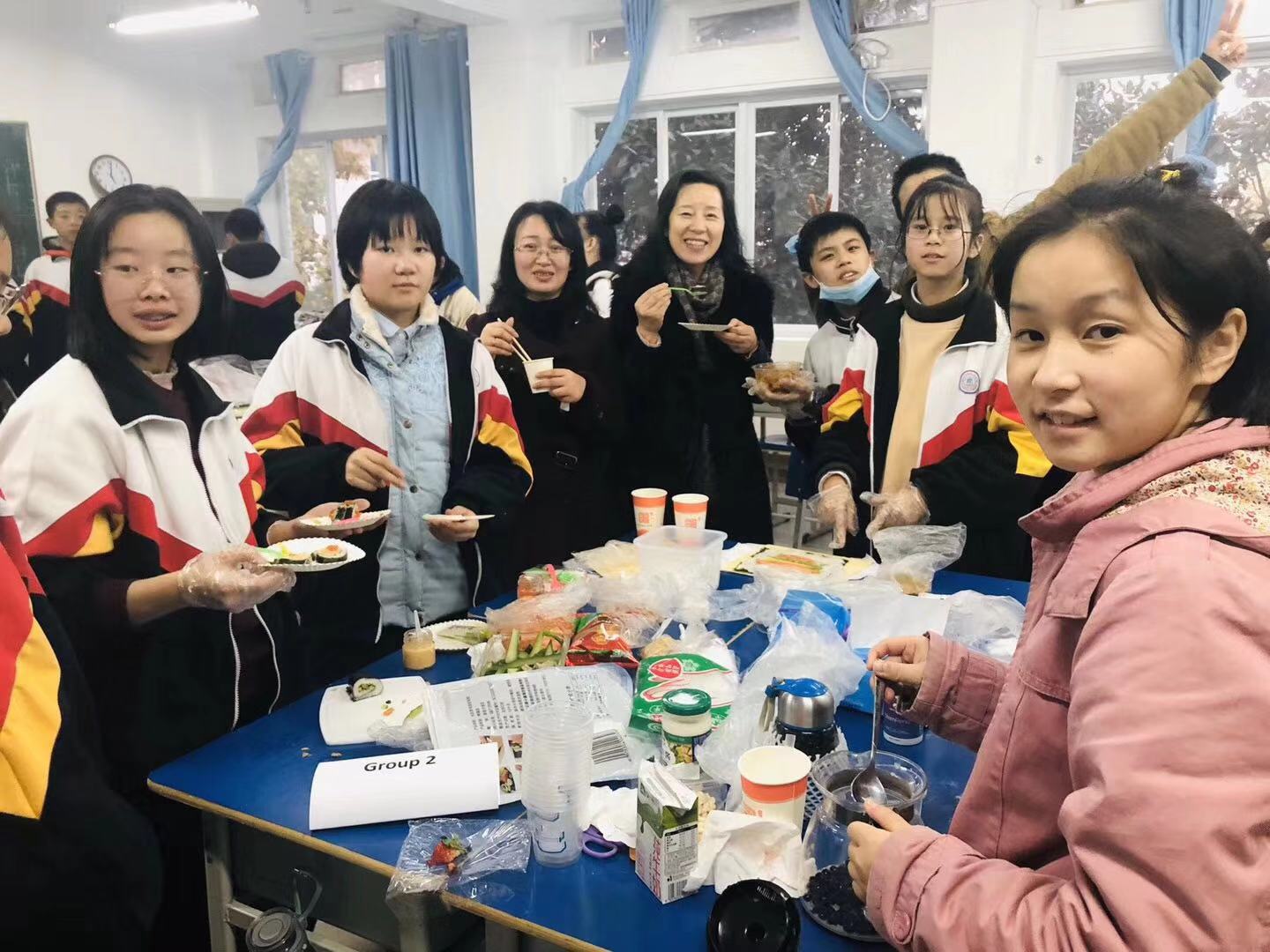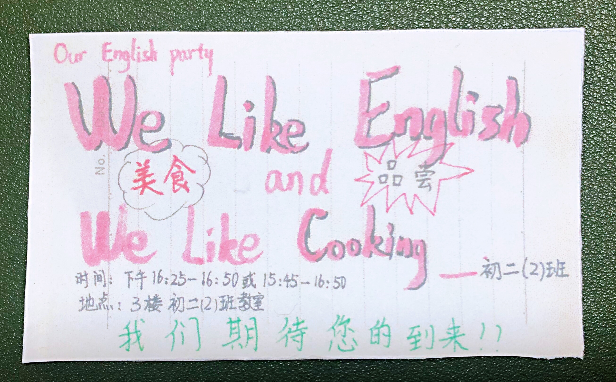 從本周二(12月3日)開始,同學(xué)們就積極籌備:他們分組討論、確定菜品;分工合作,準(zhǔn)備食材,撰寫英語發(fā)言稿;布置會(huì)場,制作PPT;設(shè)計(jì)請?zhí)堅(jiān)u委老師。這個(gè)過程中同學(xué)們展示出極大的參與熱情。無論是在課間還是放學(xué)后,都能看到同學(xué)們聚在一起,或是眉飛色舞地交流自己的想法,或是低頭湊在一起研究“蔥姜蒜燒炸煎煮”該如何翻譯,或是四處打聽收集情報(bào),揣摩其他同學(xué)、老師喜歡的口味。