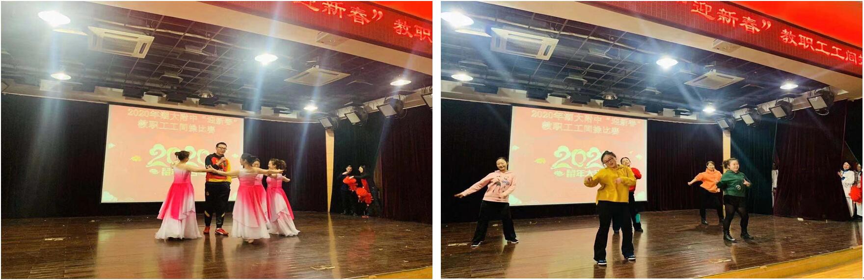 2020年1月17日下午3點30分,我校2020年“迎新春”教師舞蹈比賽在二樓報告廳圓滿落幕,本次活動由校工會主辦,來自各年級處室的八支參賽隊進行了形式多樣、異彩紛呈地舞蹈展示,并最終評選出1個一等獎、2個二等獎、3個三等獎。