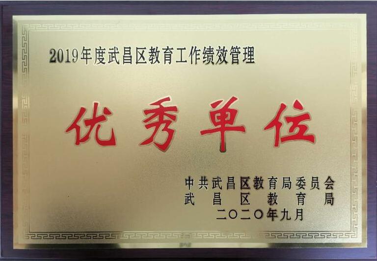 2020年我校榮獲2019年度武昌區(qū)教育工作績(jī)效管理優(yōu)秀單位