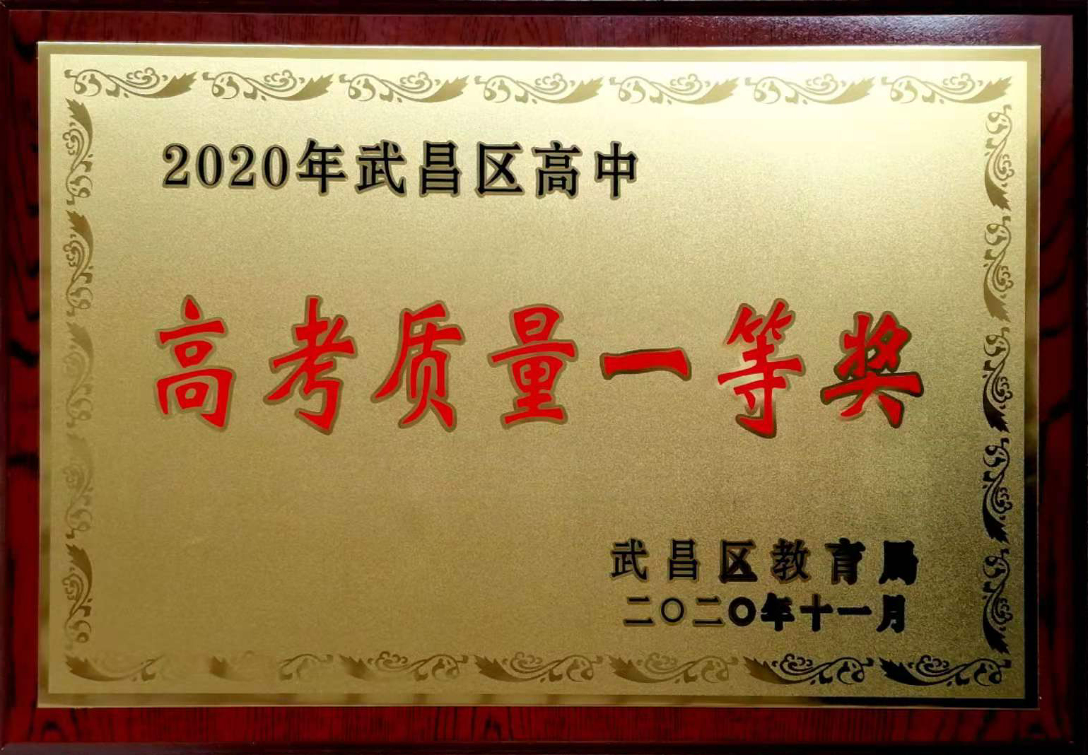 榮獲2020年武昌區(qū)高中高考質(zhì)量一等獎(區(qū)教育局)