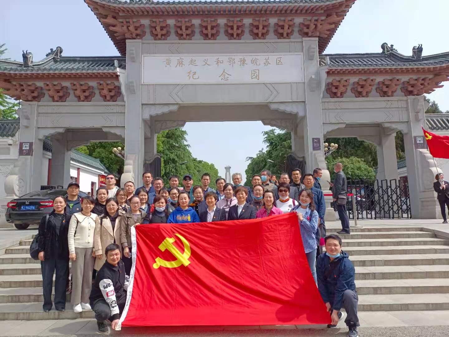 4月17日上午10點半,黨員們到達黃麻起義和鄂豫皖蘇區(qū)革命烈士陵園。