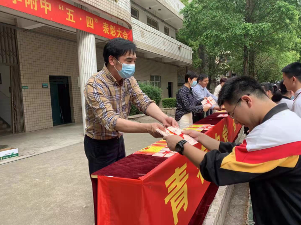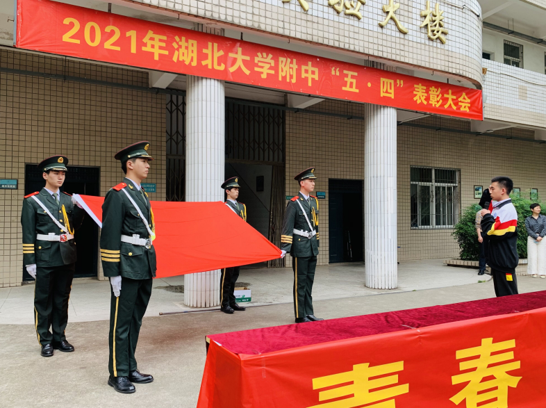5月7日下午湖北大學(xué)附屬中學(xué)紀(jì)念五四運(yùn)動102周年“青春向黨,奮斗強(qiáng)國”新團(tuán)員入團(tuán)儀式暨五四表彰大會在學(xué)校操場隆重舉行。校長李明華、黨總支書記何鳳桃、副校長陳衛(wèi)東、副校長衛(wèi)月琴出席大會并為先進(jìn)集體和個人頒獎。學(xué)工處、校團(tuán)委、各年級負(fù)責(zé)人及全校師生參加大會。