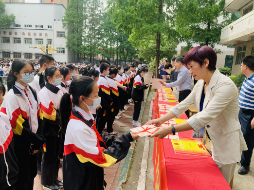 校領(lǐng)導(dǎo)為新團(tuán)員頒發(fā)團(tuán)證、佩戴團(tuán)徽