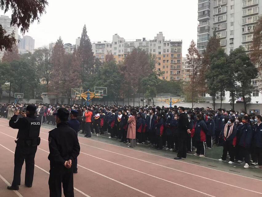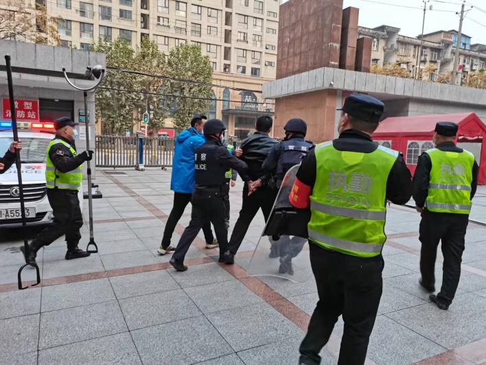 4:25分,保安發(fā)現(xiàn)持刀暴恐分子試圖闖入校園,先期阻攔其進(jìn)入并迅速報(bào)告學(xué)工處,學(xué)工處立即向應(yīng)急指揮組責(zé)任人衛(wèi)月琴副校長(zhǎng)報(bào)告相關(guān)情況,并第一時(shí)間撥打“110”報(bào)警。所有防暴組成員持器械立刻到校門廣場(chǎng),據(jù)守對(duì)應(yīng)樓道,阻止暴恐分子進(jìn)入逸夫樓或教學(xué)樓。余家頭派出所民警接警后迅速趕到現(xiàn)場(chǎng),大家一起最短時(shí)間制服了暴恐分子。