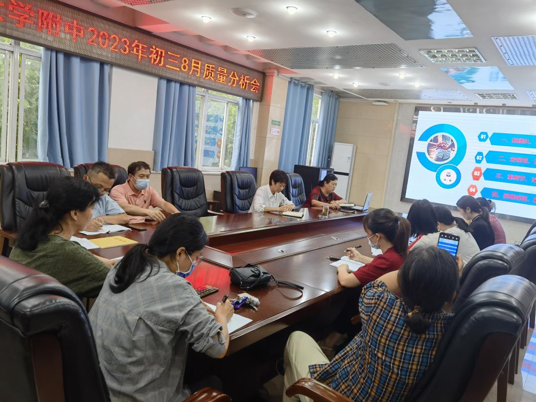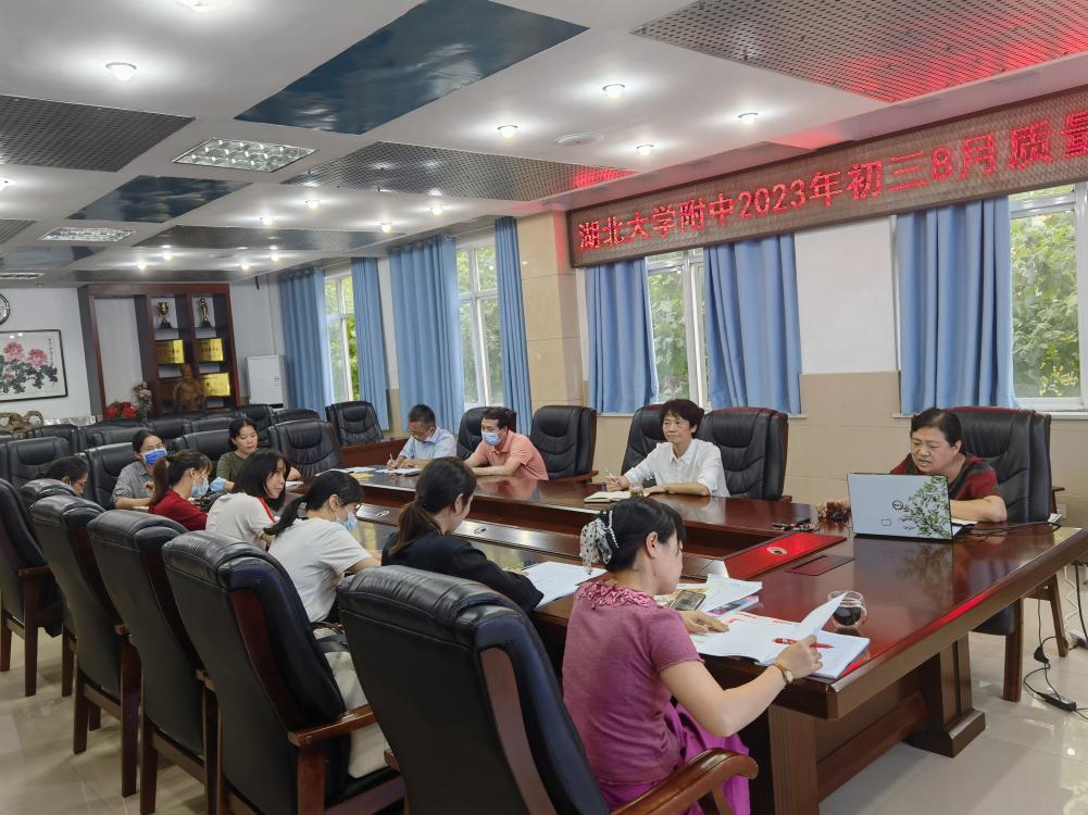 2022年8月31日下午,湖大附中新初三年級(jí)八下期末質(zhì)量分析與九年級(jí)第一次備考會(huì)議在學(xué)校二樓小會(huì)議室順利召開(kāi)。分管校長(zhǎng)衛(wèi)月琴及初三年級(jí)除正在居家隔離的連衛(wèi)老師以外的全體教師參加了本次會(huì)議。會(huì)議分析到位,數(shù)據(jù)充分,目標(biāo)明確,為后續(xù)備考工作指明了方向。