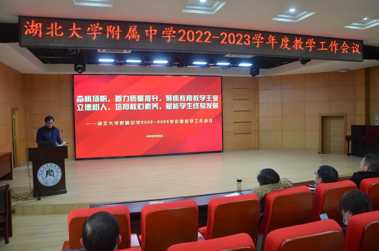 歲序更替,華章日新。2月3日下午2:30時(shí),湖北大學(xué)附屬中學(xué)在報(bào)告廳召開全校教學(xué)工作會(huì)議。會(huì)議由教工處主任陳曉方主持,全校教職工參與。