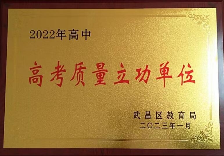 2023年1月——學(xué)校榮獲2022年高中高考質(zhì)量立功單位(武昌區(qū)教育局)