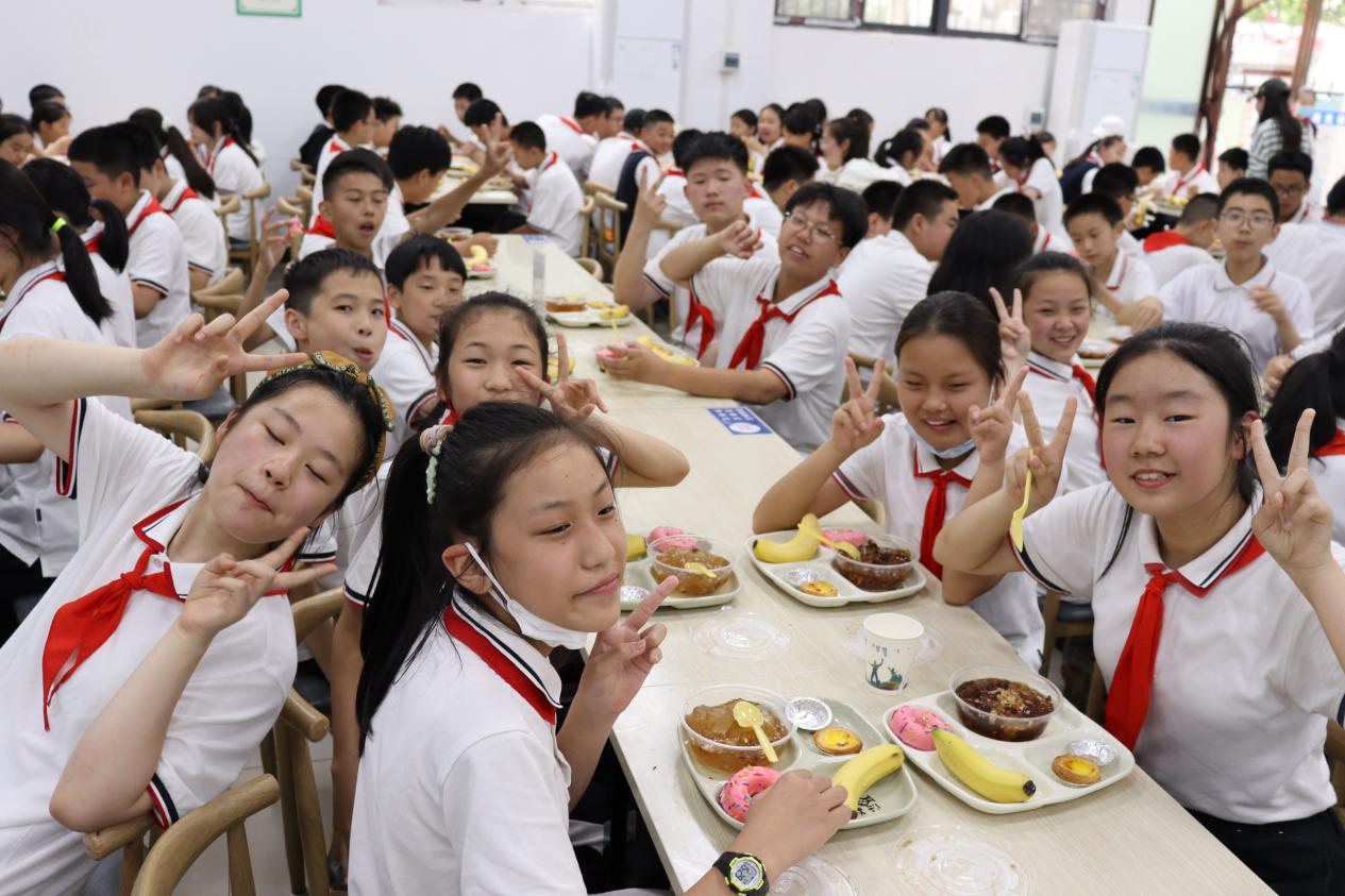 第二站參觀(guān)湖大附中食堂,并品嘗了師傅們親自做的點(diǎn)心及各種小吃,讓附小畢業(yè)年級(jí)的師生不僅有豐富的校園生活體驗(yàn),更有豐富營(yíng)養(yǎng)的味蕾體驗(yàn)。