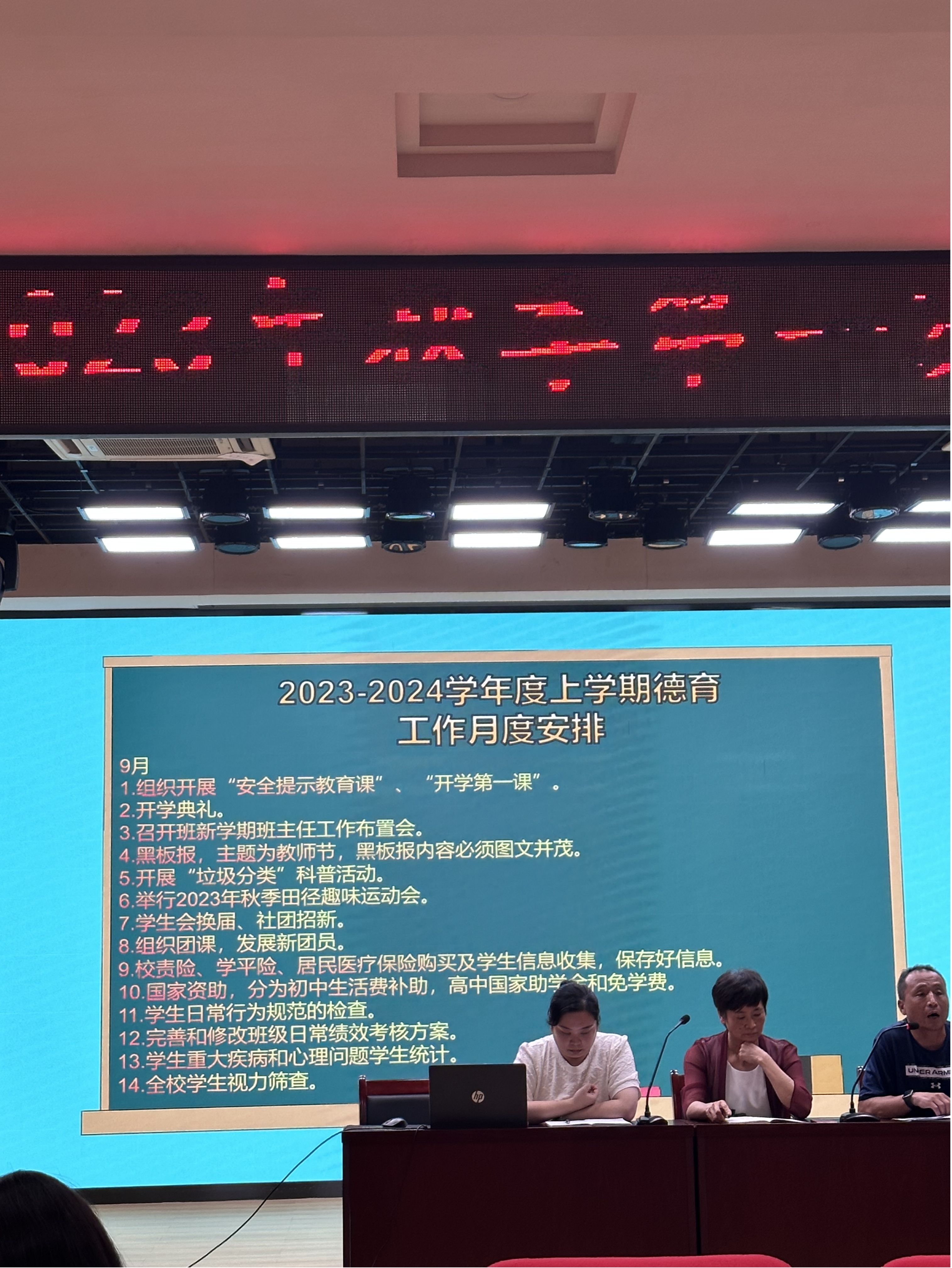 2023年9月4日17:35,我校2023-2024學(xué)年上學(xué)期第一次班主任例會(huì)在學(xué)校二樓報(bào)告廳順利召開。會(huì)議主要就德育、安全、團(tuán)隊(duì)活動(dòng)等三個(gè)方面的重點(diǎn)工作進(jìn)行了布置。衛(wèi)校長(zhǎng)蒞臨會(huì)議指導(dǎo),并做總結(jié)講話。
